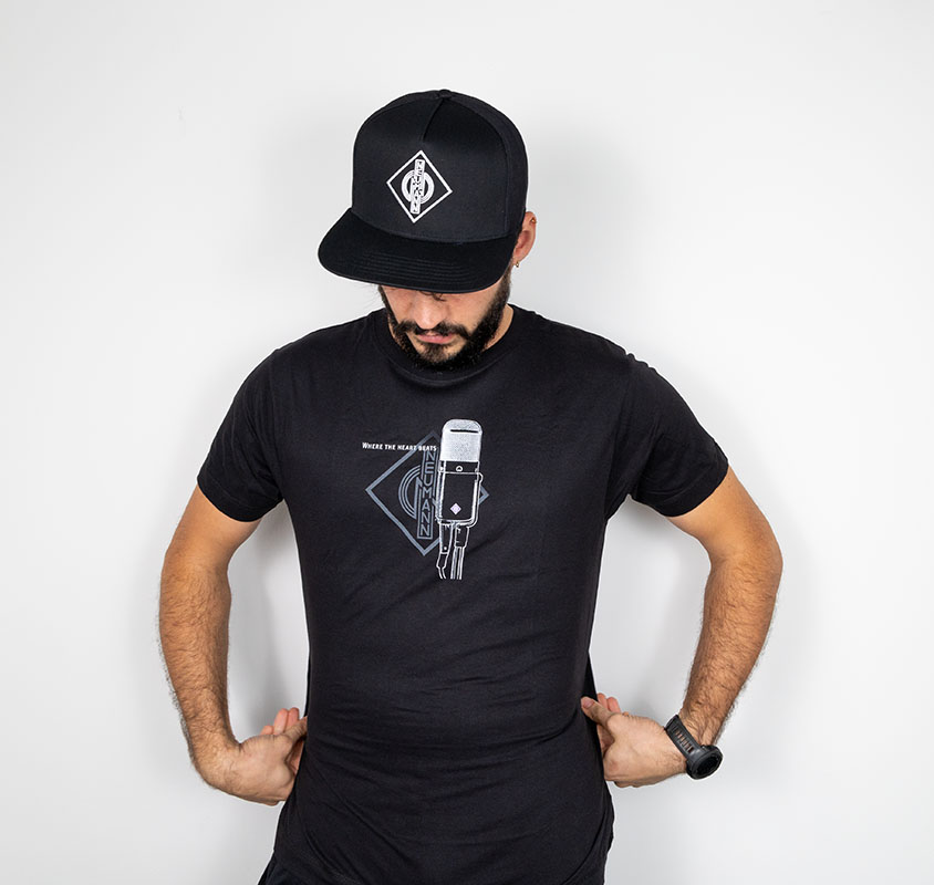 - mit gedrucktem Mikrofon-Motiv auf der Vorderseite