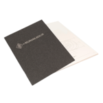 • Einband aus anthrazitfarbenem Naturkarton mit silberner Heißfolienprägung