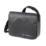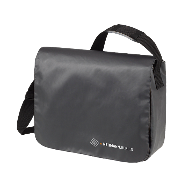 Umhängetasche aus grauer LKW-Plane (Tarpaulin) mit Neumann-Logo