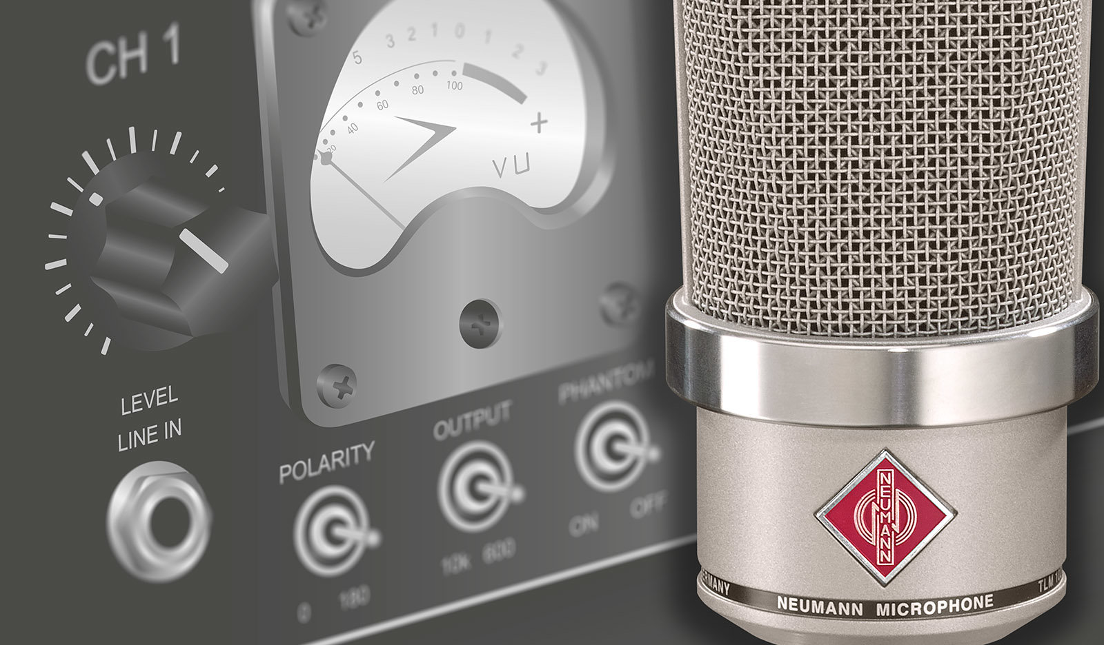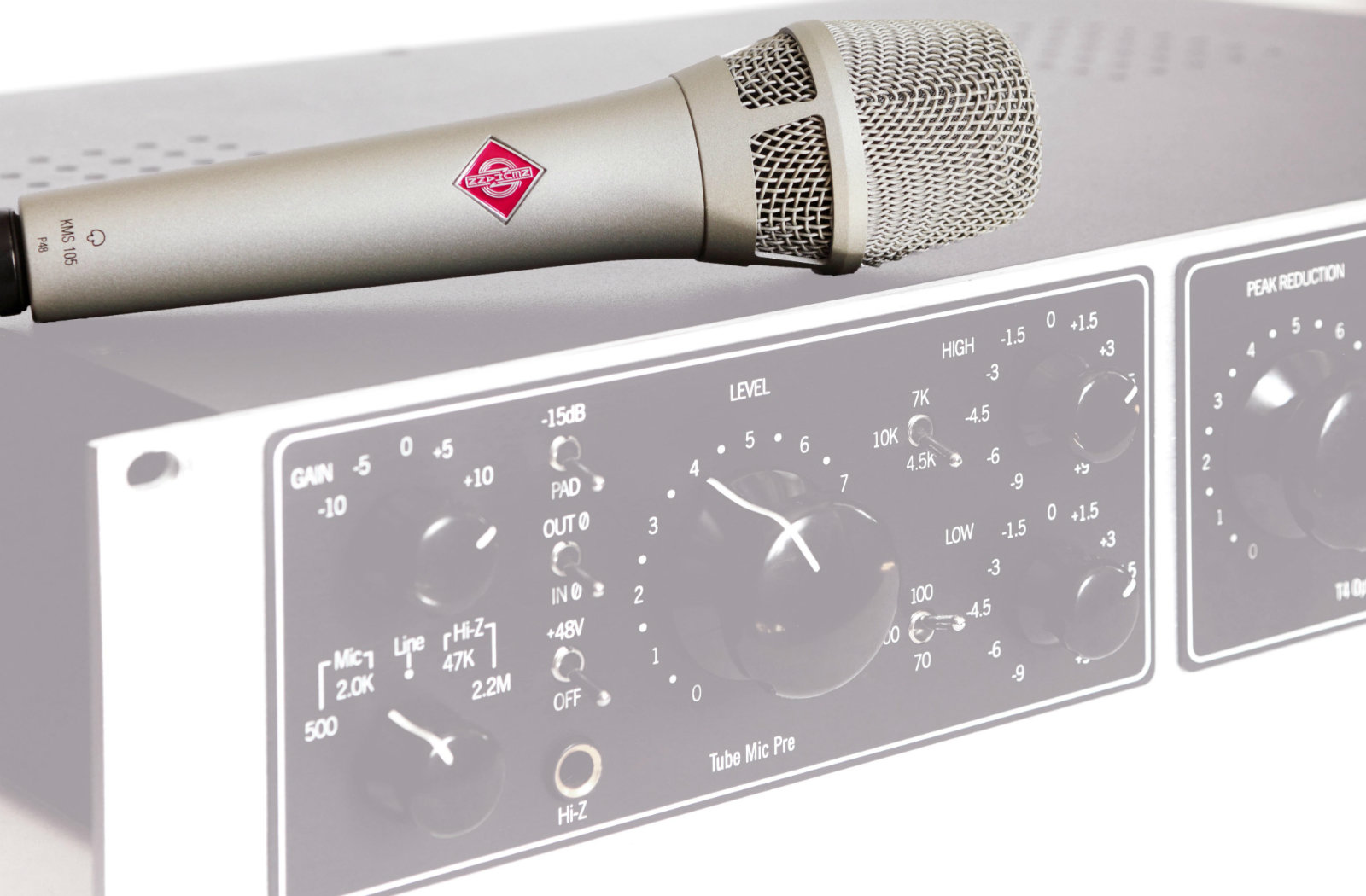 Um zu zeigen, wie viel bzw. wenig der Preamp zum Gesamtrauschen beiträgt, haben wir ein dynamisches Mikrofon (Sennheiser MD 441, rechts) und ein Kondensatormikrofon (Neumann TLM 103, links) in gleichem Abstand vor einem Percussion-Instrument positioniert. Beide Mikrofone wurden an jeweils drei Vorverstärkern unterschiedlicher Qualität getestet.