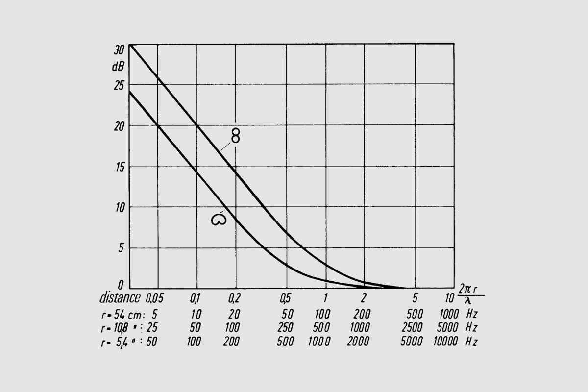 Wie kommt’s? Nun, es gibt zwei Arten von Schallwandlern: Druckempfänger und Druckgradientenempfänger. Der Nahbesprechungseffekt tritt nur bei Druckgradientenempfängern auf (die auf den Druckunterschied zwischen Vorder- und Rückseite der Membran reagieren). Reine Druckempfänger haben Kugelcharakteristik, reine Druckgradientenempfänger haben Achtercharakteristik. Mikrofone mit Nierencharakteristik, die den Großteil der Bühnen- und Studiomikrofone ausmachen, sind „Wandler zwischen den Welten“; sie arbeiten zu gleichen Teilen als Druckempfänger und als Druckgradientenempfänger.