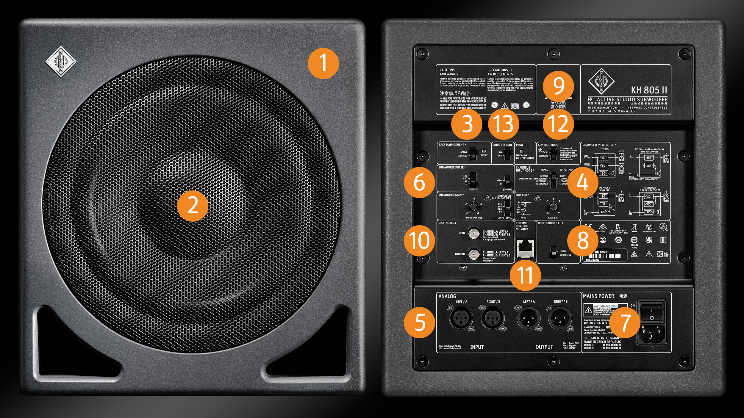 Der KH 805 II ist der perfekte Subwoofer für mittelgroße Räume und bietet Basswiedergabe mit Neumann-Präzision. Er verfügt über einen einzigartigen, flexiblen Bass Manager für Stereo-Systeme und kann in Surround- und Immersive-Setups für die LFE-Wiedergabe oder mit externem Bassmanagement eingesetzt werden. Analoge und digitale Ein- und Ausgänge ermöglichen flexible Anschlussmöglichkeiten.