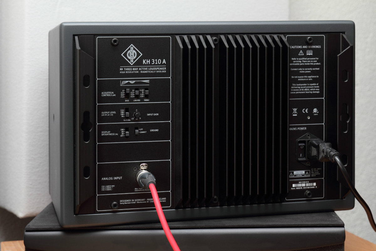 Let’s first talk about technical differences. Home stereo or hi-fi speakers are almost always “passive” speakers; i.e. they require an external (power) amplifier with speaker outputs. Studio monitors, with very few exceptions, are “active” or “powered” speakers, which means the power amplifier is built into the speaker cabinet. So you have to connect it to a line source with a volume control, i.e. an audio interface or a dedicated monitor controller.