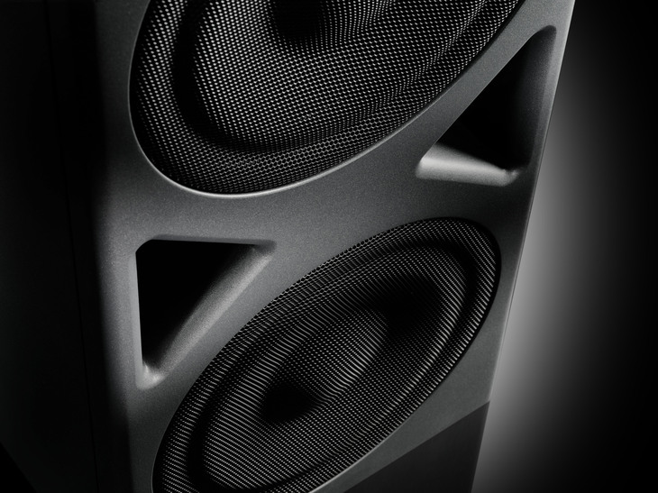(2) Two in-house modelled long-throw bass drivers with Extremely Linear Force