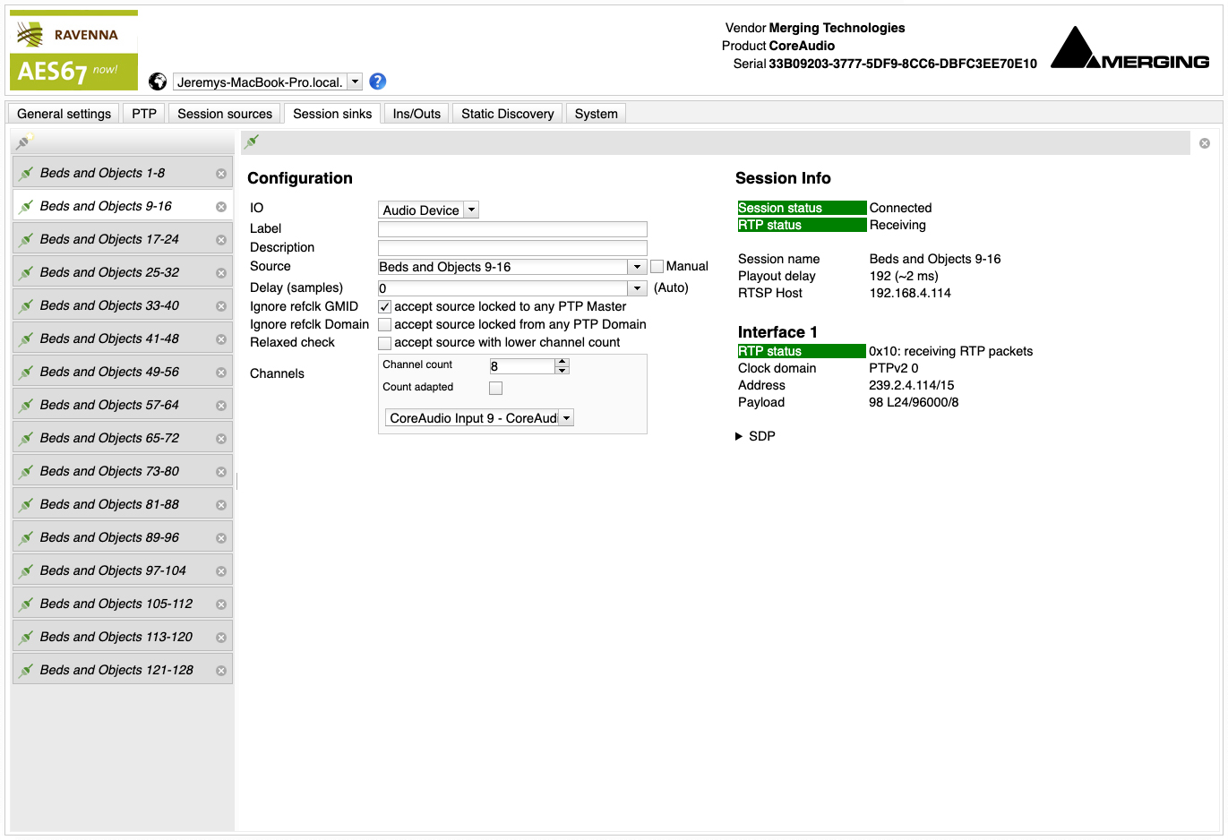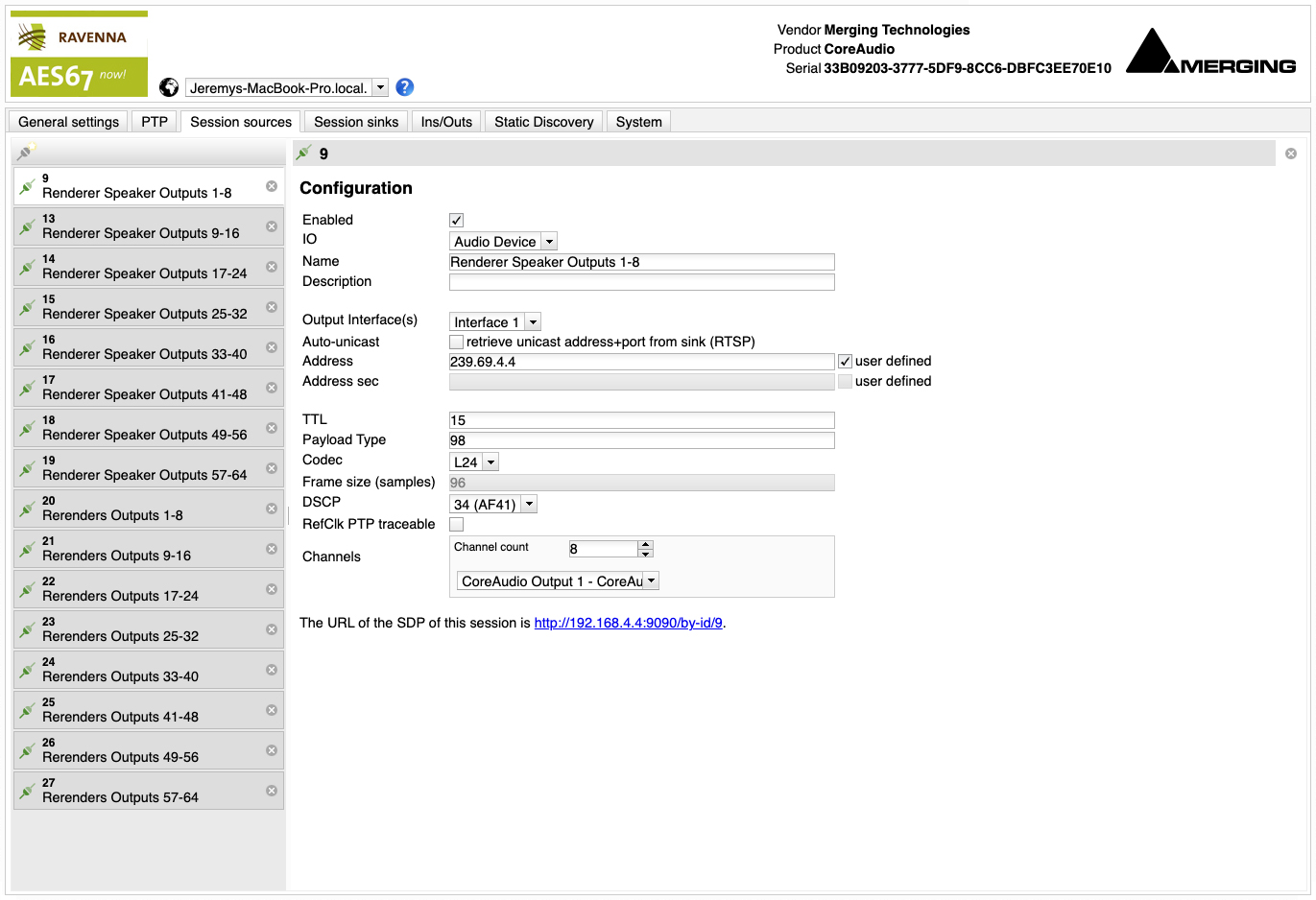 Connections can then be made using a web GUI, to and from senders and receivers.