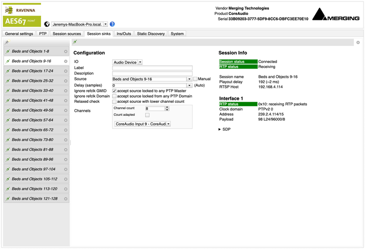 VAD (Virtual Audio Device) is Merging Technologies' RAVENNA/ AES67 driver for macOS.
