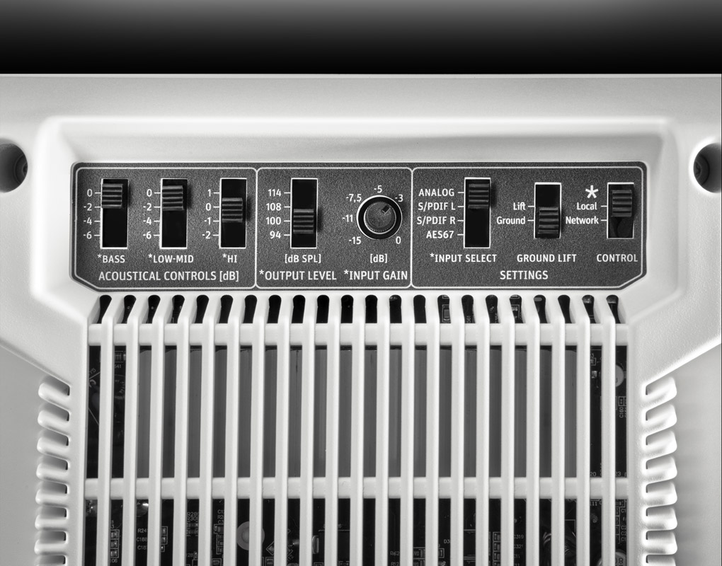 Protection circuitry Independent soft clip, peak and thermo limiters for woofer and tweeter; Woofer excursion limiter; thermo limiter for the electronics and amplifiers