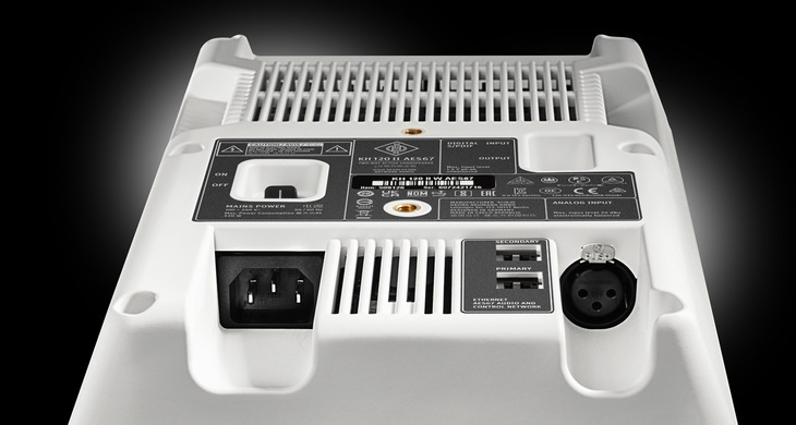 Additionally, the KH 120 II AES67 model variant offers integrated redundant AES67 audio network ports that are fully compliant with broadcast standards such as ST 2110, ST 2022-7 redundancy, and RAVENNA. At the same time, the KH 120 II AES67 is compatible with DANTE®-generated AES67 network streams.