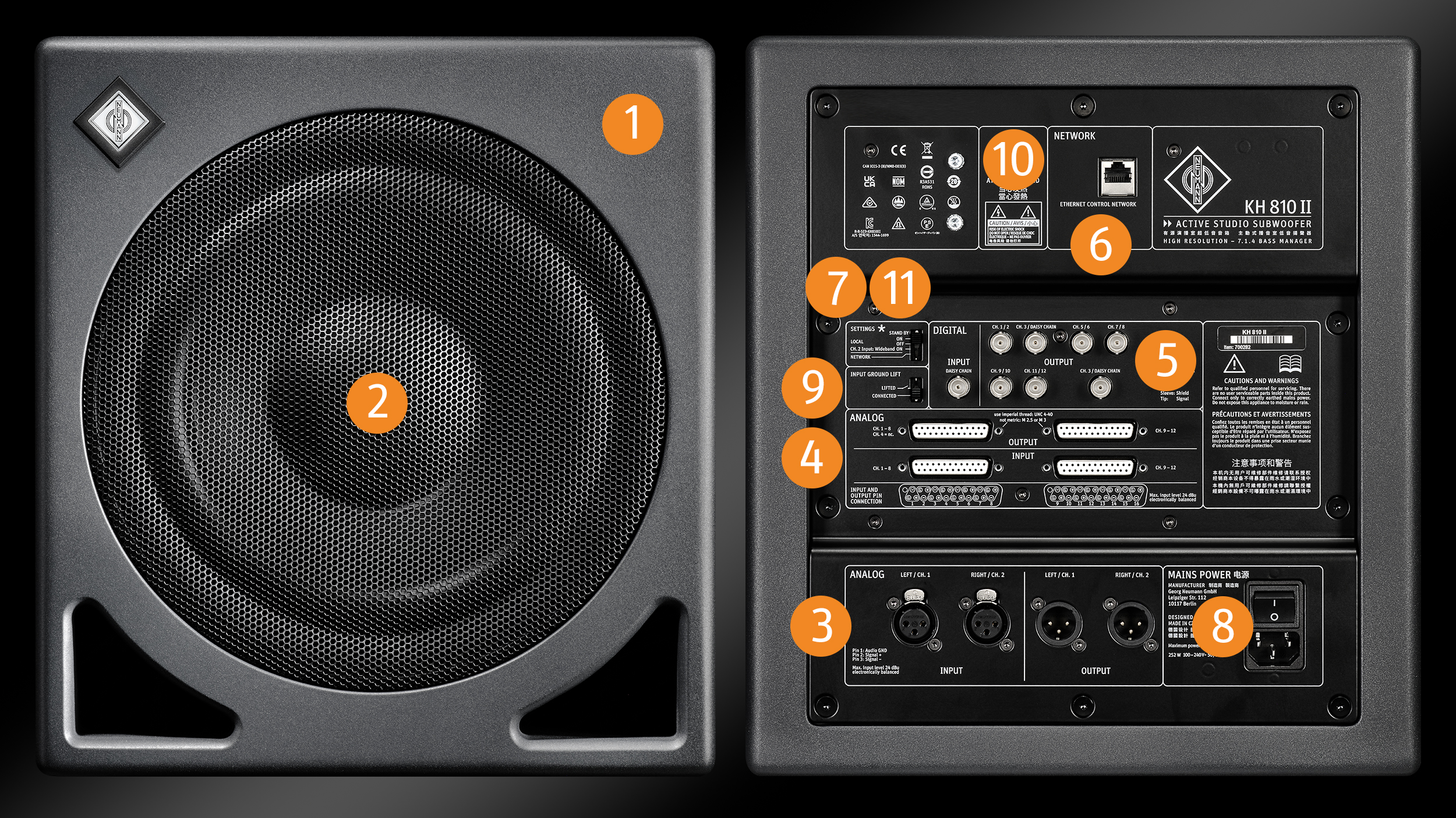The KH 810 II extends low frequency reproduction down to 16 Hz and delivers about twice the output of the KH 750 DSP. This makes the KH 810 II the perfect complement to mid-sized speakers such as the KH 150 and KH 310.