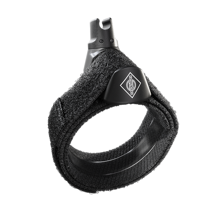 Universal strap clip to mount the gooseneck of the Miniature Clip Mic system on a oboe, clarinet, recorder, bassoon, flute, harp