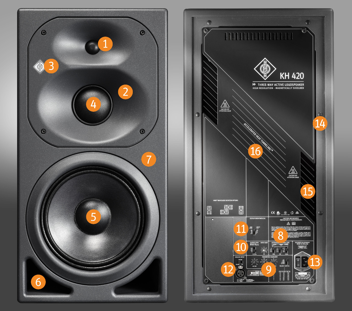 Limitadores térmicos de acción rápida separados para woofer, rango medio y tweeter para proteger las bobinas de voz y los amplificadores de potencia