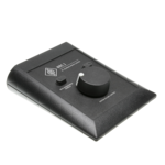A simple hardware remote used to control the system volume, LFE gain, and bass management bypass.