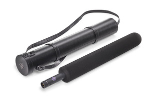 Microfone shotgun altamente direcional para captação a distâncias mais longas.